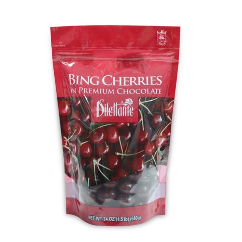 The dragées are made in Dilettante's special revolving kettles that cover each fruit piece with two smooth, even chocolate coats. At Dilettante, we are dedicated to creating superior products. All of our gourmet chocolates are made with pure, natural ingredients to create rich-tasting, high-quality goods. In making our chocolate covered cherries we use premium quality white, milk and dark chocolate along with dried bing cherries fresh from the Pacific Northwest.