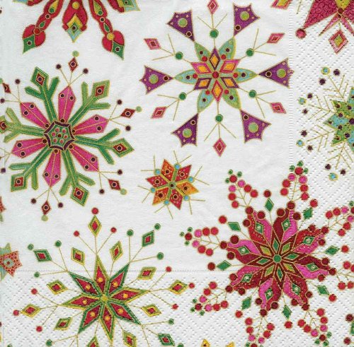 Caspari 10230C, Adapt the elegance of a formal table setting to everyday life with luxury paper plates and napkins from caspari. Disposability means less time spent on clean-up and more time with friends and family. Printed in Germany using non-toxic, water-soluble dyes on the softest tissue printable, these three-ply paper cocktail napkins have the feel of linen without the maintenance. They are 100-percent biodegradable and compostable, combining convenience with sustainability. The jeweled snowflakes pattern by designer parveneh holloway combines a classic pattern with bright jewel-tone colors to create a fabulous, versatile snowflake design for the whole winter season. Sold in a pack of 20, each napkin measures 5-square inch folded and opens to 10-square inch. Caspari - bringing style and convenience into your home every day.